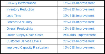 A lot of researches have been done to get to know the benefit of implementing efficient SCM. One research by PRTM USA has shown the following benefits: